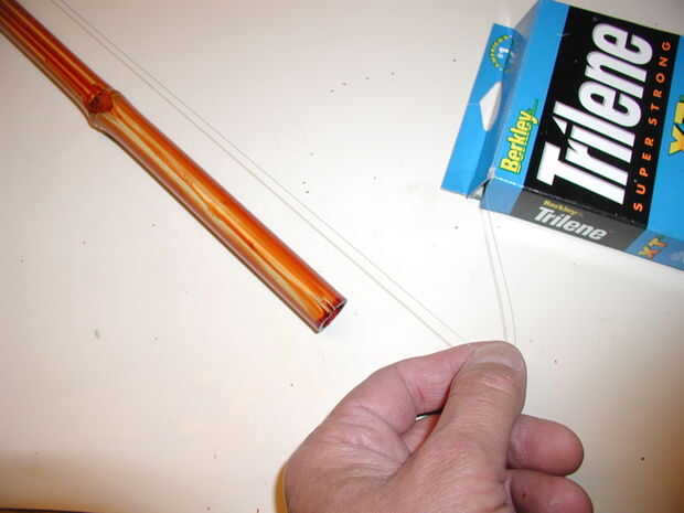esto es una caña de pescar de miniatura que hice fuera de la parte inferior la mitad de alguna vieja caña de Shimano en mi garaje. Envolvió el (cayendo a pedazos) corcho asa en cinta eléctrica y añadido un ojal a la punta de la varilla. También compr