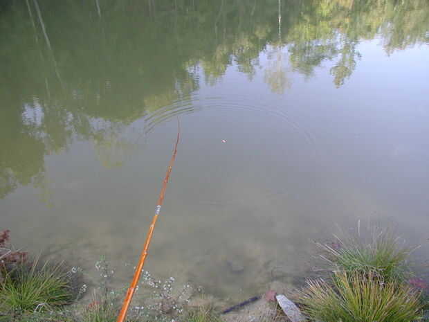 Para poner la línea en el agua, sujete el extremo de la vara en una mano y la línea sobre el gancho en el otro. Cara el agua cerca de la orilla. Sostenga el poste en sobre un ángulo de 45 grados y dejar ir de la línea por lo que hace pivotar hacia fuera sobre el agua y en el extremo más lejano del oscilación, el extremo del poste, cayendo así el cebo y corcho en el agua de la gota. Puede obtener la distancia completa de la línea ligeramente levantando y bajando la punta de la poste en medio del swing. La práctica ayuda, sobre todo si quieren ver dorky y más tarde mostrará a sus hijos cómo hacerlo.
