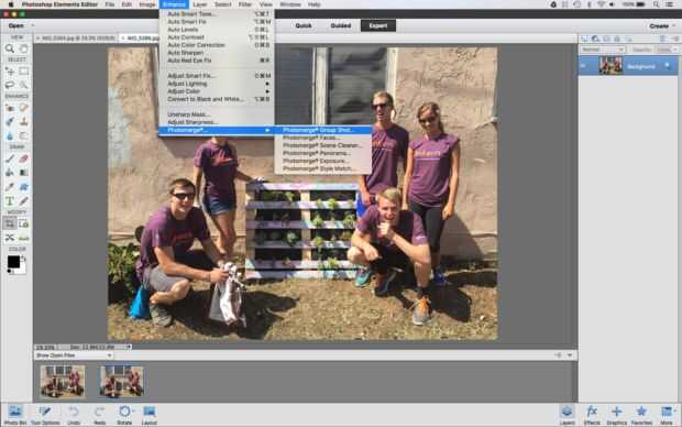 A continuación, en el menú, vaya a mejorar > Photomerge > toma de grupo Photomerge...