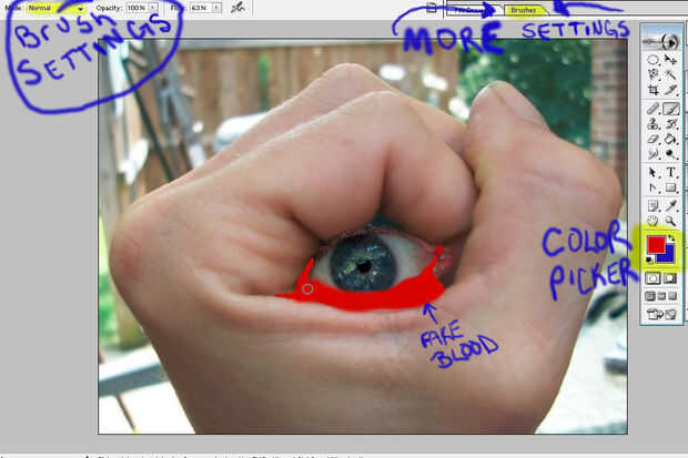 3. usando el pincel Normal, pintura algo de sangre hacia la parte inferior del ojo.