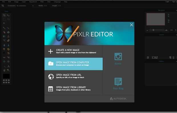 Volver a Pixlr y haga clic en imagen abierta desde ordenador. Si hace clic en salir de esto volver a cargar la página.