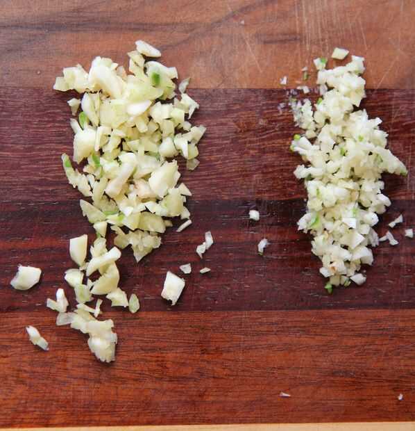 Puesto que usted está haciendo una buena cantidad de tajar en este paso, se puede espolvorear ligeramente su pila de ajo con la sal que le permitirán no se pegue al cuchillo como son cortar. Sin embargo, tenga cuidado de no querer más de sal que afectan la salinidad de los alimentos.