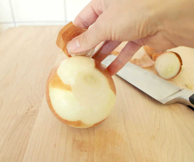 2. Pele el onion(s) no hay ninguna piel parecida al papel a la izquierda.