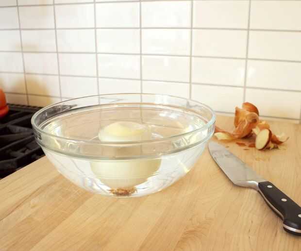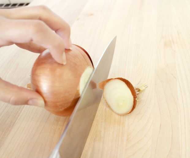 3. sumerja en agua fría durante 5 minutos para reducir la lágrimas de cebolla.