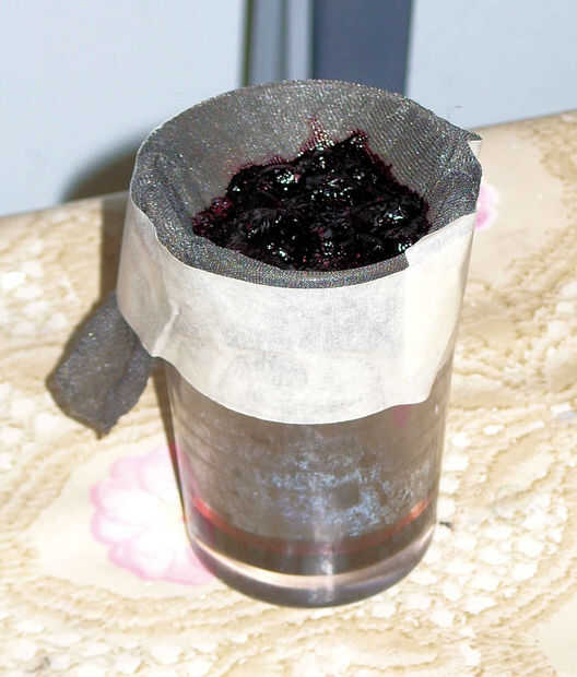 Después les Paladins puré para arriba con una cuchara, luego poner un pedazo de medias sobre otro vaso o taza y vierta los arándanos a través de las pantimedias!