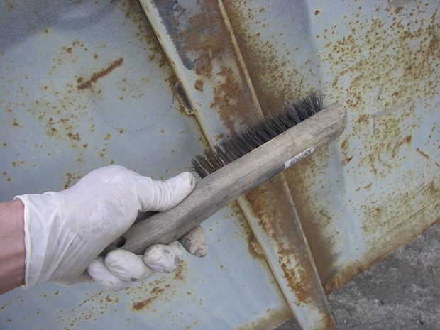 Aprendí sobre el cepillado de alambre de metal oxidado de mi papá. Es cómo lo hicieron en la granja.