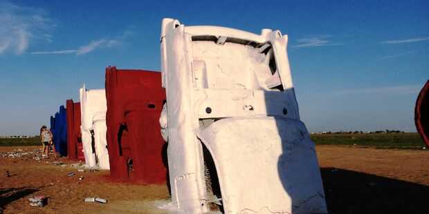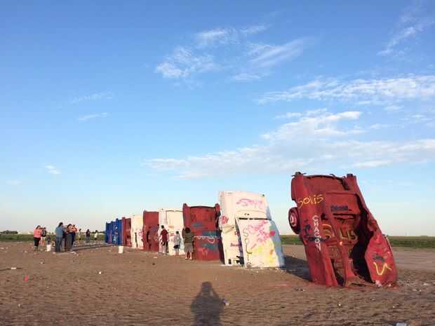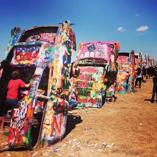 Cadillac ranch es una instalación de arte a las afueras de Amarillo Texas. Es nariz enterrada 10 viejo Cadillac en un campo de trigo en los planos del sur. Es en la ruta 66 y es un destino donde es aceptable y animado por los transeúntes para detener y graffiti.