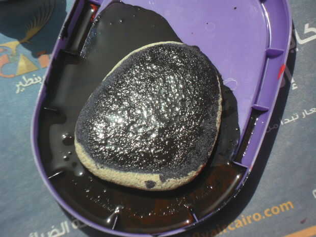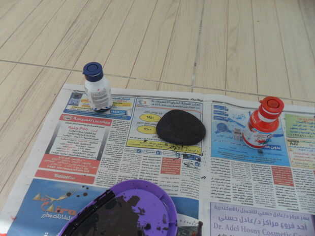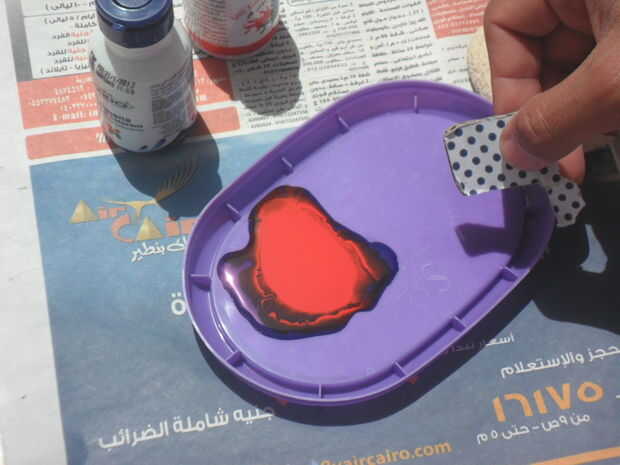 Poner la piedra de la arena en la pintura púrpura para conseguir de todo color.