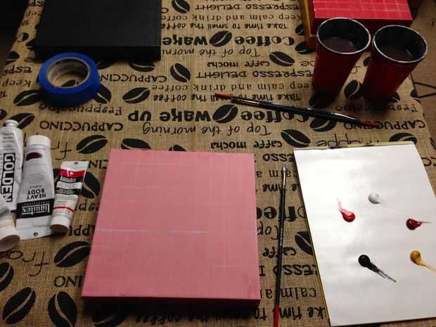Mezclar una pintura rosa brillante usando sólo blanco y rojo. Cubierta de lona en un suave Color deje para secar.