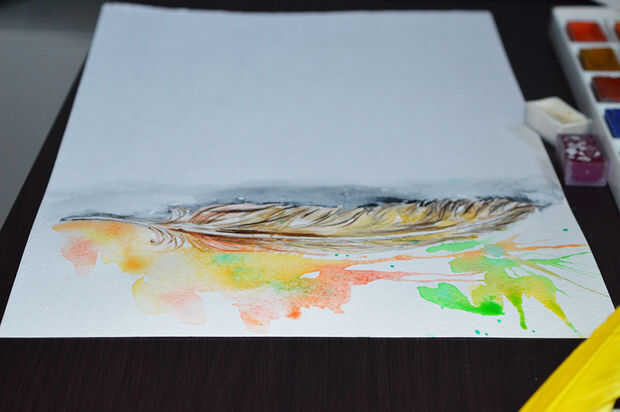 Cómo pintar la pluma realista con acuarelas (3 / 3 paso)
