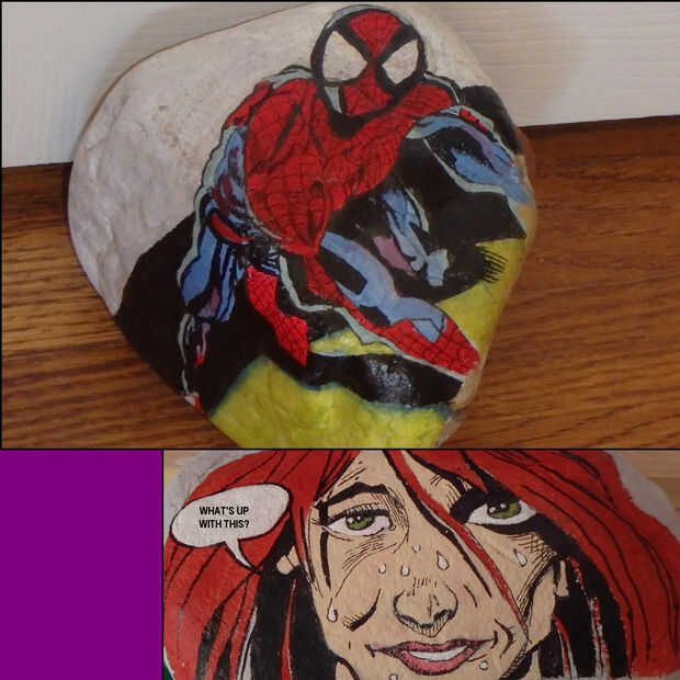 Hice dos personajes de este instructable: Spider man y doncella... cualquier número de caracteres se puede utilizar, por supuesto, dependiendo de su opción de favoritos. Esto fue muy fácil de hacer, basta con elegir una piedra o dos, aprovechar los personajes con marcador o lápiz y pintura! Ver mi anterior instructable de animales pintura en rocas aquí: