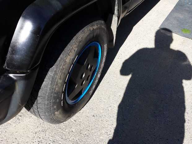 Después de la pintura se ha secado he decidido pintar una raya azul alrededor del borde externo de las llantas. Utilicé un pincel pequeños artes y la pintura se llama seguridad azul. Realmente aparece cuando se miran ahora.
