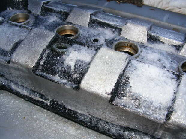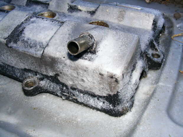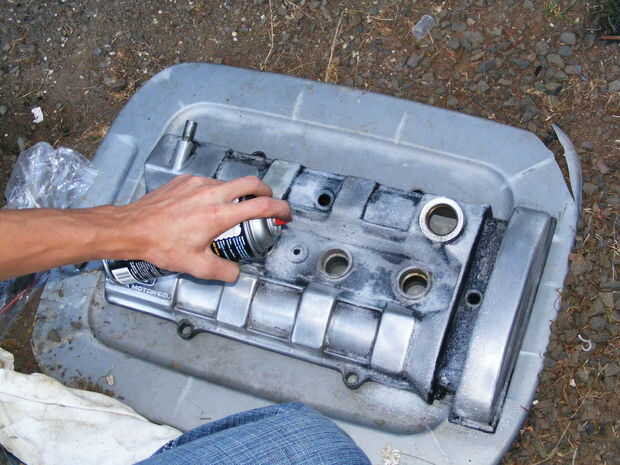 Dar el removedor del avión por lo menos diez minutos en remojo y hacer lo que es mejor. Use un cepillo de alambre para quitar cosas que no salen con el removedor del avión con el eliminador de sigue... Una vez que esté quitado toda la pintura, de la manguera. Sí, se corre el riesgo de obtener un poco de agua en el motor. No insistir mucho. Una gota no mata a su coche. Para todos aquellos que hay que mendigar difieran, tráeme estudios de laboratorio, y a cambiar esto. Use otra toalla para secar el exceso de agua. Utilice el Windex para limpiar apagado. Ahora lo pasamos a la pintura.