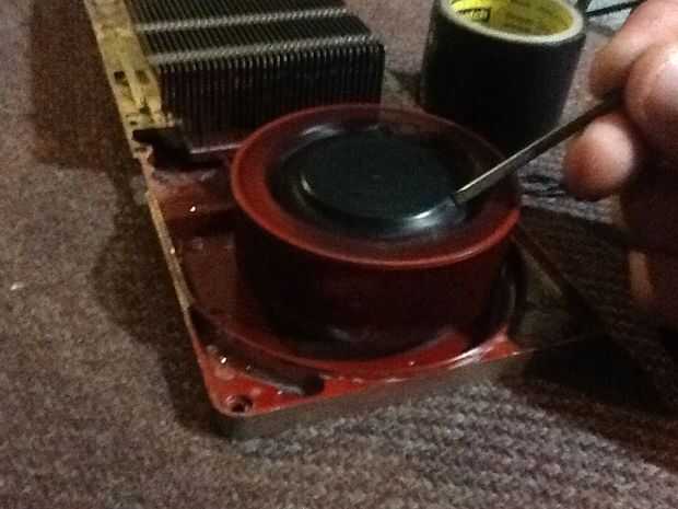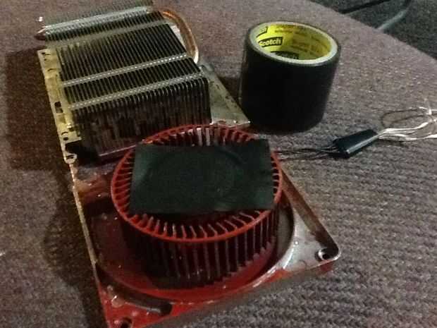 Entonces tomó un trozo grande de cinta eléctrica y cubre el centro del ventilador con él.