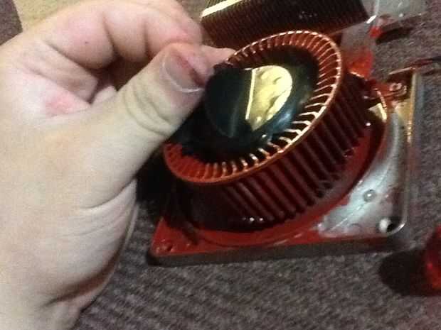 Enciende el ventilador y tomé un pequeño destornillador de cabeza plana y raspa el borde del ventilador hasta que toda la cinta no deseada lanzó.