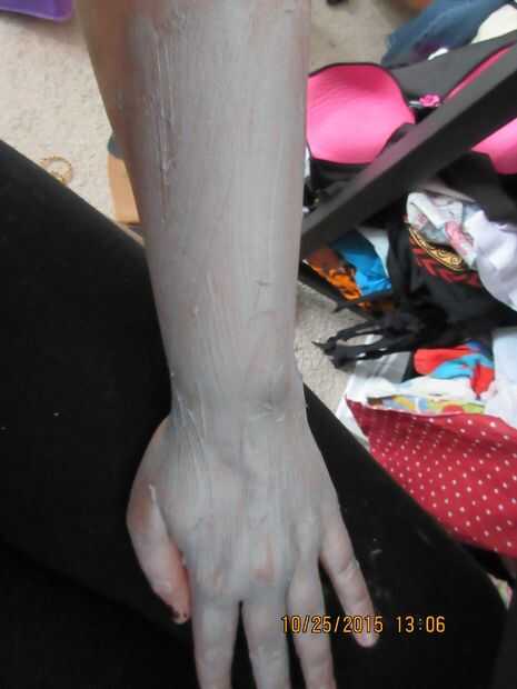 ¡Bienvenido! Es hora de la patrón de brazos izquierdos de Kali. (Eventualmente tendrá 4 de ellos.)Nuevamente estoy haciendo un viejo caminante de aluminio en Kali, la diosa hindú de varios brazos del tiempo y del empoderamiento. Su "piel" está s
