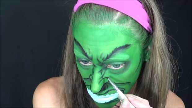 Toma una sombra de ojos negra mate de ULTA utilizado profundizar algunas sombras. Colocó en él las arrugas, debajo de la ceja, alrededor de la nariz, alrededor de la boca, en la línea de contorno, ect. También decidí añadir algunas arrugas nuevas en el lado de mis ojos.