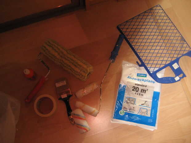 Herramientas mencionadas pueden comprarse en las tiendas pero se puede utilizar herramientas caseras simplemente vea que los instrumentos estén limpios. Los rodillos se pueden comprar por separado de manijas thay que solo hacen realmente puede girar libremente. El cubo debe ser lo suficientemente grande como para montar 'la red'. También tenga en cuenta que el cubo probablemente va ser desechado después del trabajo (!).