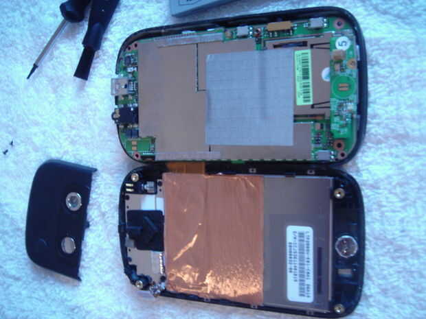 La pantalla, utilice la herramienta abridor caso y lo saque. Empezar con las pestañas medianas. Después de usted puede fácilmente sacarlo.