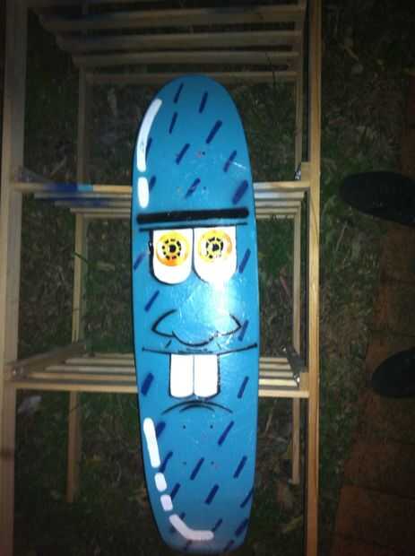 Estaba skateboarding temprano una mañana con mi perro cuando me topé con un deck de skate de madera roto cerca de las rampas de skate.Recogiendo hasta que me di cuenta de que sería un gran patín gancho... alguien la pérdida podría ser reclamada.Ven c