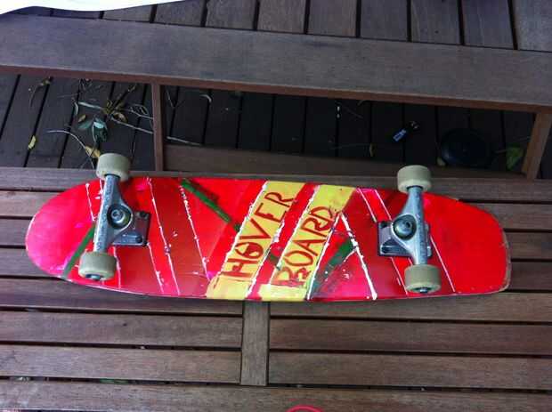 Estaba skateboarding temprano una mañana con mi perro cuando me topé con un deck de skate de madera roto cerca de las rampas de skate.Recogiendo hasta que me di cuenta de que sería un gran patín gancho... alguien la pérdida podría ser reclamada.Ven c