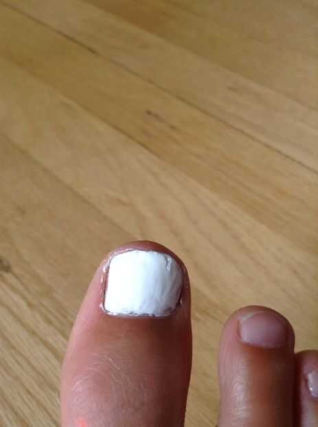 En primer lugar que desea pintar en su color de fondo, que en este caso, es de color blanco. No importa si algunas de las uñas es en el dedo del pie, puede siempre limpiarlo para arriba más adelante