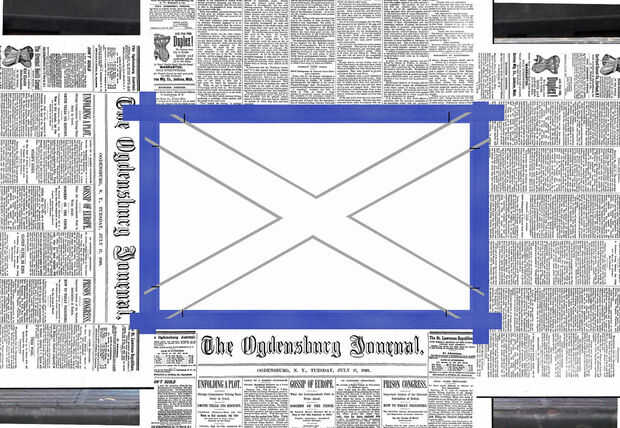 A continuación, tome las tiras de la cinta de enmascarar de 1" para cubrir la 'X' sólo apenas superposición de la cinta de 1/4" solo establecidas (foto 3).