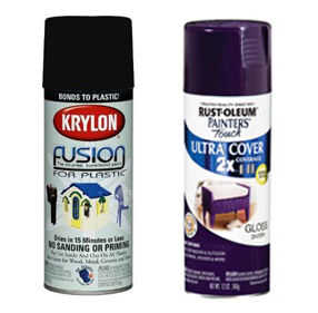 SprayPaint x2: uno hecho de plástico, uno un color diferente. (Utilicé Krylon Fusion para plástico en negro satinado y la toque Ultra cubierta pintor de Rust-Oleum en púrpura).