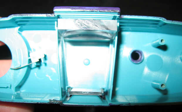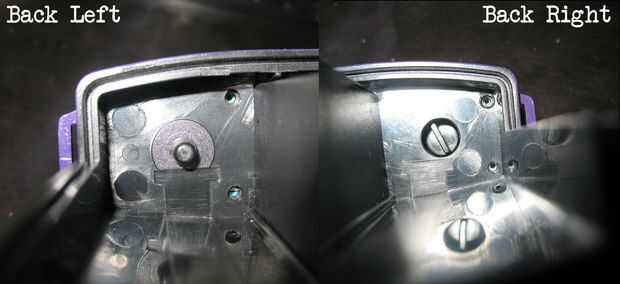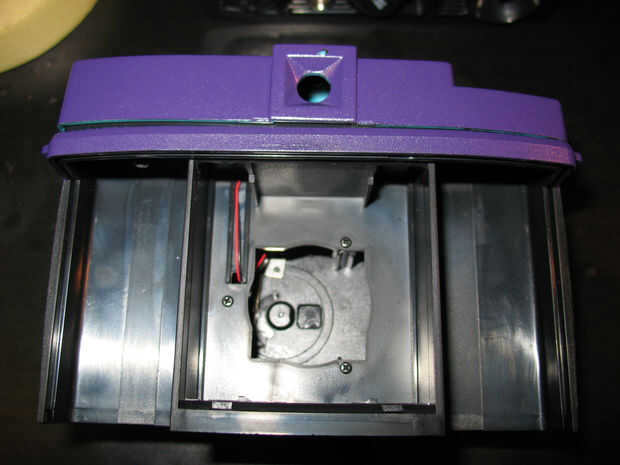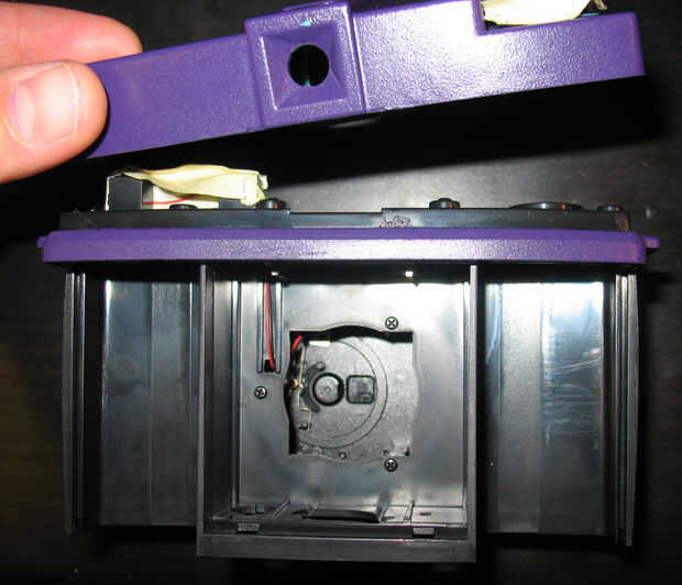 11. ahora has quitado con éxito el objetivo de la vivienda (parte superior) del cuerpo de la cámara! Aferrarse a cada una de estas piezas, que vamos a utilizar en un momento. Recordar; la cámara no será púrpura como mina es ahora mismo. Suyo es probablemente un color turquesa todavía en este punto.