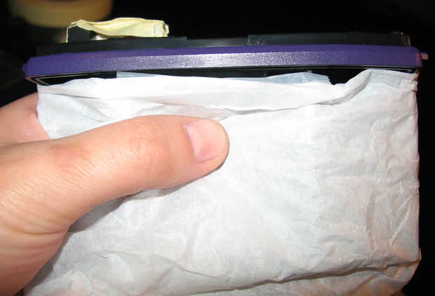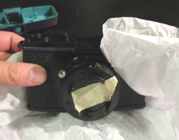 2. luego cubrí el cuerpo principal de la cámara con papel de seda para bloquear el resto de la cámara de que pintado. Volver a graba todo el camino alrededor de los bordes para mantener el tejido en su lugar. Estos pasos me tomaron un poco de tiempo alineando la cinta.