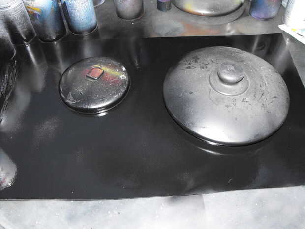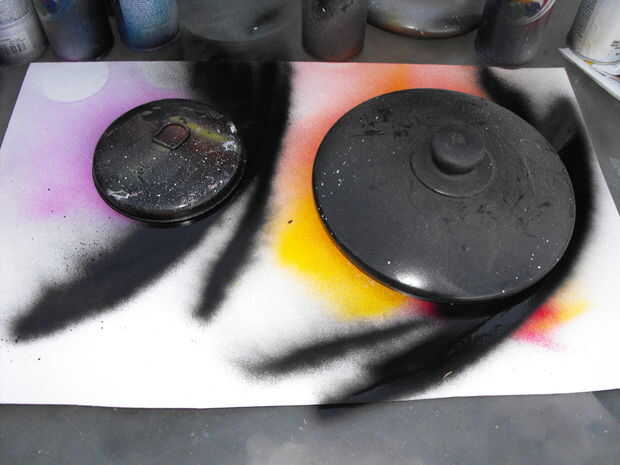Aquí es donde vienen los objetos circulares. Tienen que ser cosas que se puede conseguir pintura en spray en todas partes. Fui a una tienda de segunda mano y compraron algunas viejas tapas de olla, también uso los tapones de spray de pintura y bajo si necesito lunas muy débil.