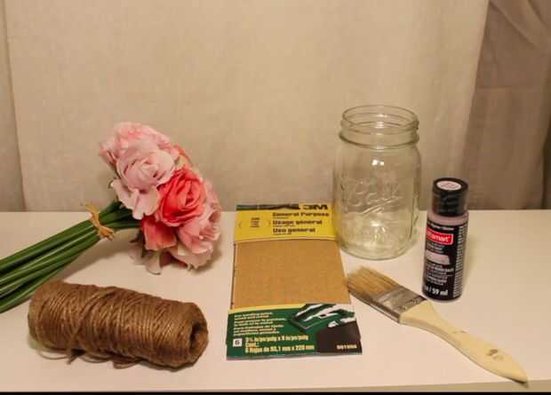Paso 1: materiales-3 tarros de mason-flores falsas 9-Tablón de madera-Mancha madera-abrazaderas de manguera 3-3 clavos-Pintura en aerosol-AcrílicoPaso 2: Cortar la pieza de madera a la longitud adecuadaPaso 3: Mancha la maderaPaso 4: Cortar los tallo