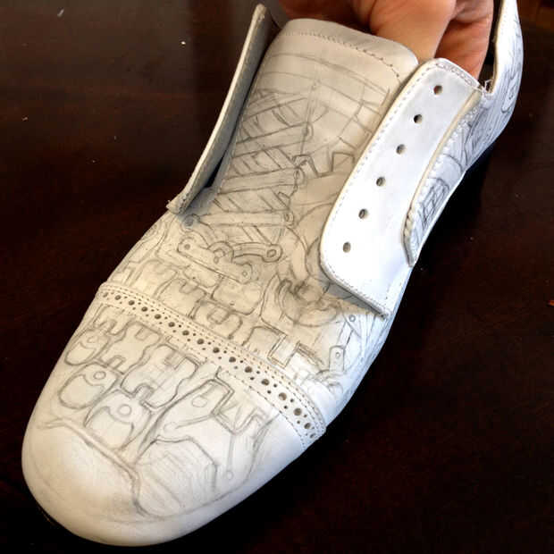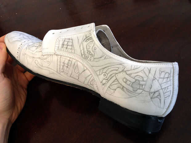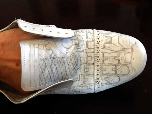 Nota: dibujó en y pintado mis zapatos uno a la vez porque (a) no estaba seguro si funcionaría y (b) no estaba segura que quería que ambos zapatos tienen el mismo aspecto. Sin embargo, recomiendo pintura ambos zapatos al mismo tiempo. Así, los colores todos se emparejan y podrás usar tus zapatos otra vez mucho más pronto.