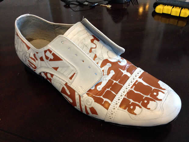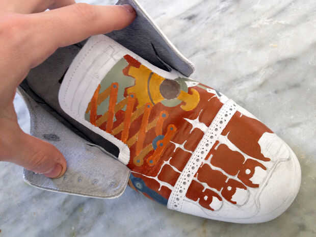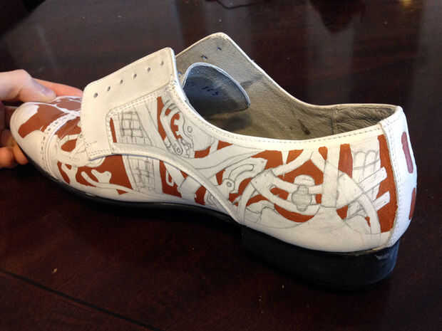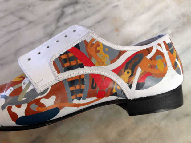 Pintar la persiana de una de zapatos a la vez, utilizando negrita áreas sólidas de color por ahora. Posteriormente puede Agregar sombreado y textura a estas áreas. La pintura de cuero da muy buena cobertura opaca, por lo que una fina capa generalmente totalmente encubrir lo que estaba debajo de él. Sin embargo, ocasionalmente puede que necesite aplicar varias capas para lograr esta cobertura. Esto es casi una opción mejor que tratar de aplicar una capa gruesa, frotis o secado desigual. Afortunadamente, la pintura se seca tan rápido que se pueden aplicar varias capas en una sola sesión.