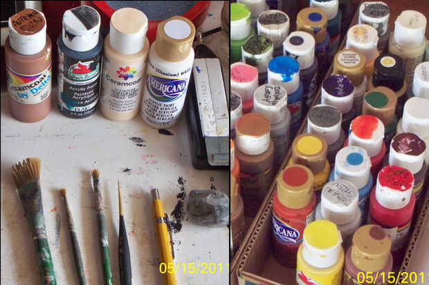 Usé pintura de arte de acrílico regular ya que tengo muchos colores disponibles. Pinturas de acrílico seca rápidamente y mi arte de medios de comunicación de la opción. Ud. va a necesitar pinceles, por supuesto, y puede utilizar trazadores de líneas, rondas, pisos, shaders, etc.. Utilizar el pincel liner para detalles finos.