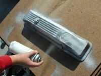 Una vez que se ha quitado toda la pintura de la cubierta debe secar todo el agua de enjuague para que puedan comenzar pintura. Cuando la tapa está suficientemente seca, obtener el poder de motor pintura de esmalte en el color seleccionado. Es importante que utilizar esmalte de motor y pintura en aerosol no regular, como la cubierta puede alcanzar temperaturas sobre 200 grados Fahrenheit agite bien la lata y sacar la parte superior. Para pintar la cubierta, utilizar incluso hacia atrás y adelante movimientos manteniendo la lata uniformemente 8-12 pulgadas de la tapa y viajar más allá del borde de la misma cada vez. Soporte en diferentes ángulos a la cubierta para ver todos los lados y todos los bordes. Esto puede tomar 2-5 capas hasta que estés satisfecho con la cobertura y apariencia de la cubierta. Colores más claros cubren menos y toman más capas. Una vez que la cubierta se cubre a su satisfacción, deje que se seque por lo menos 15 minutos hasta que esté seco al tacto.