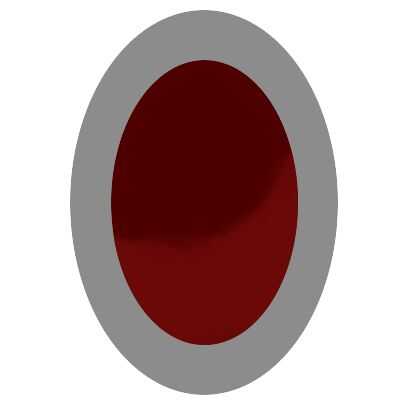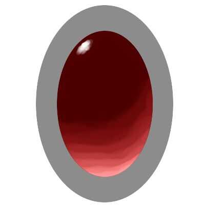 Para dar a la piedra preciosa una mirada más transparente, tenemos que pintar una secuencia de colores rojo más claros en la parte inferior de la mitad del óvalo rojo (ver fotos). Si usas pintura, añadir un poco blanco al rojo para cada capa de color. Además, en la última foto puedes ver el punto blanco en la parte superior de la piedra preciosa. Esto simula donde la luz penetra la superficie de la gema.