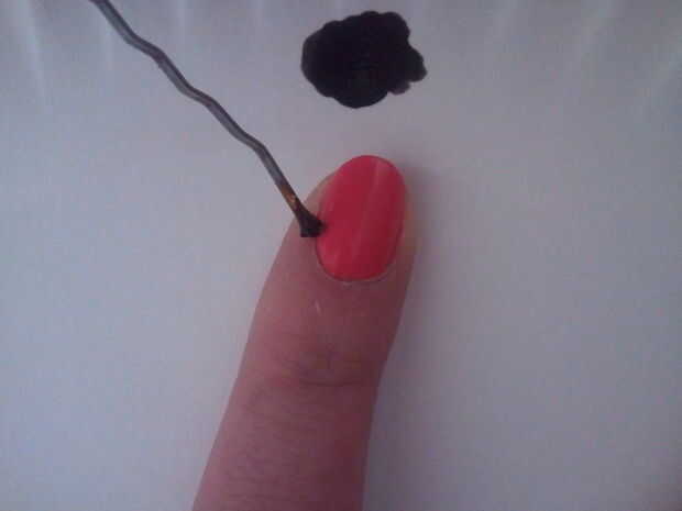 2. abrir un bobby pin; Coloque un extremo redondeado en la globalización del pulimento para reunir la pintura en el pasador.