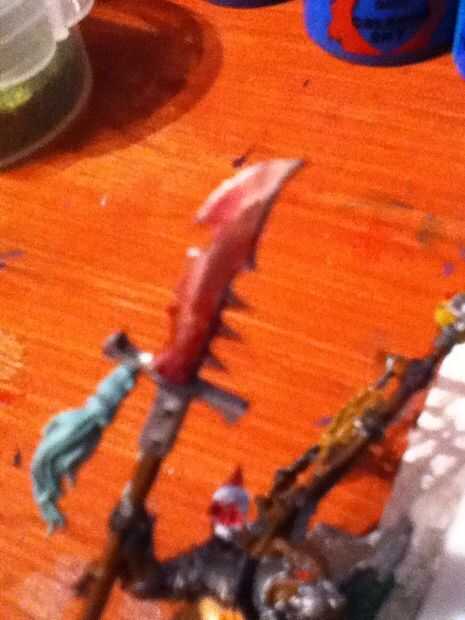 Para la arma usé una pintura especial llamada la sangre de la bruja de Dios de la sangre es que usé en mi elfo.