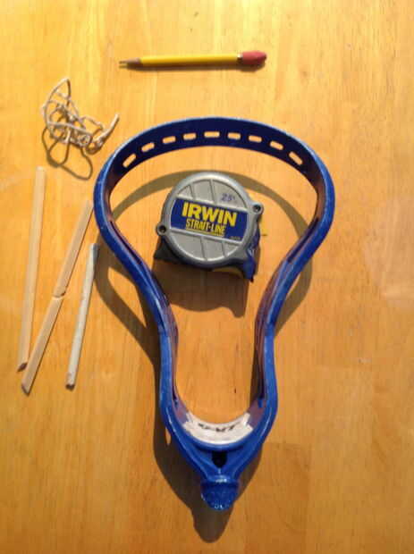 Que necesita, una regla o lío. cinta, un lápiz, una cadena de pared lado de lacrosse, tres palos de chop, un cuchillo y obviamente una cabeza de lacrosse.