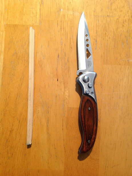 Luego cortar un palillo largo con el cuchillo y los bordes del punto.