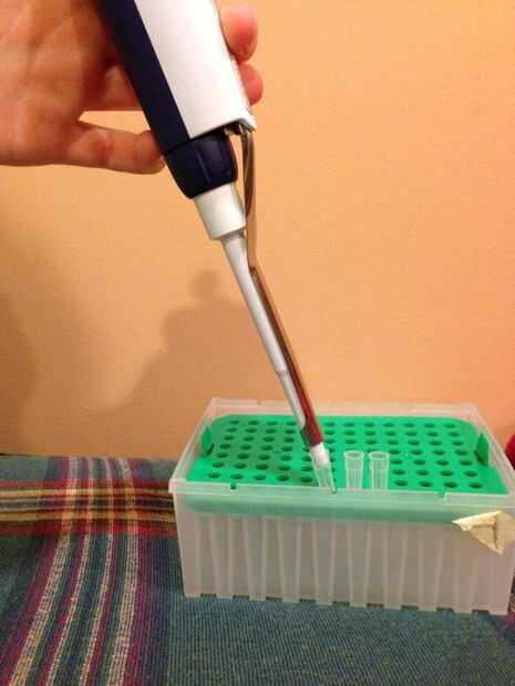 En primer lugar, asegúrese de tener la correcta pipeta tip tamaño y marca para que coincida con su pipeta! Si la punta no cabe en el extremo de la pipeta, no es el tamaño correcto. Para poner una punta de la pipeta, abra la caja de la punta y coloque el extremo de la pipeta en una punta. Presione hacia abajo suavemente, pero firmemente, para asegurarse de que la punta está firmemente en la pipeta. Luego puede tomar la pipeta de la caja y la punta debe venir con él. Cierre el cuadro de la punta de pipeta para ayudar a prevenir la contaminación.