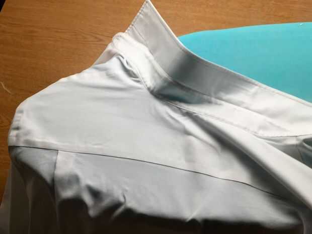 El yugo de la camisa es la hombros y parte superior de la parte posterior de la camisa. Alinee el hombro de la esquina de la camisa con la esquina triangular de la tabla de planchar, rociar con agua y hierro. Usar almidón si lo desea. Repita el proceso para el hombro opuesto.
