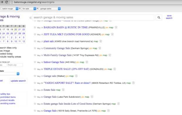 Primero necesita encontrar ventas de garaje para ir a. Por lo general encuentro mi venta de garage en Craigslist y en el sitio web para nuestro periódico local. También puede encontrar ventas de garaje en venta de garage de Facebook y los grupos de compra y venta. Foto de arriba es una lista de ventas de garaje de Craigslist.