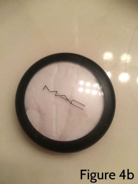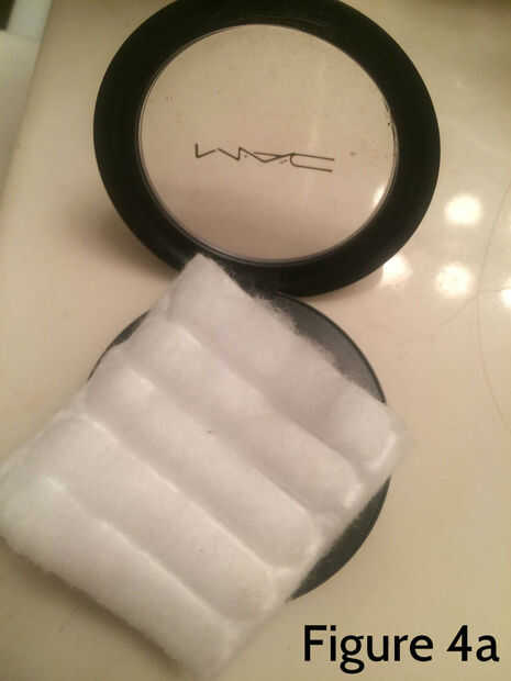 • Colocar un algodón o una bola encima de maquillaje en polvo para evitar que se rompe (figuras 4a y 4b)