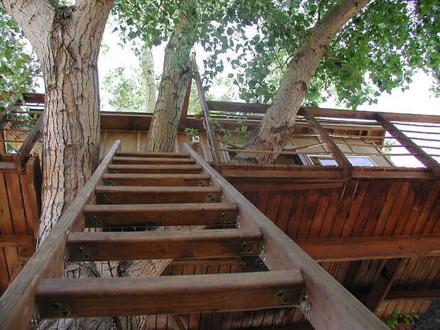La escalera de la tradicional casa del árbol – algunas tablas de madera clavadas en el tronco del árbol, es un desastre esperando a suceder. Una escalera normal, como comprados en cualquier tienda de bricolaje o simplemente tomadas de una vieja cama de cucheta, hará el truco muy bien. Alternativamente, para algo un poco más aventureros, una escalera de cuerda colgada de la plataforma de la casa del árbol también hará trabajar, pero asegúrese de que está ajustado correctamente.