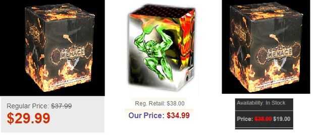 Darse una vuelta. El mismo fuego se puede tener precios muy diferentes. Foto de arriba es un ejemplo con uno de mis alimentos básicos para una final. Es una torta de 25 tiros que dispara 5 tiros de secas flores a la vez. Tenga en cuenta la diferencia de precio enorme entre proveedores. No se deje engañar por los gráficos diferentes; los tres son exactamente iguales. Hacer su investigación! Dólares guardados aquí significan un espectáculo más grande y mejor. Parte de su presupuesto también debe ir hacia el equipo de seguridad, equipos de cocción y suministros para la construcción de estanterías que garanticen sus fuegos artificiales no vuelque. Es probable que puede tener algunos de la madera en la mano ya y probablemente algunos de los equipos que usted necesita pedir prestado.