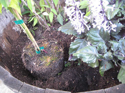 Coloque las plantas unpotted en los pozos que has creado para ellas para que estén razonablemente seguros.