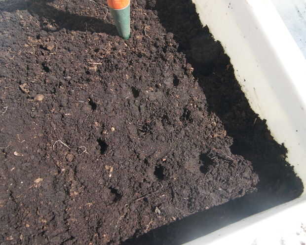 Lo mejor que he encontrado para hacer las depresiones de media pulgada para la semilla era ese instrumento práctico, un dedo.