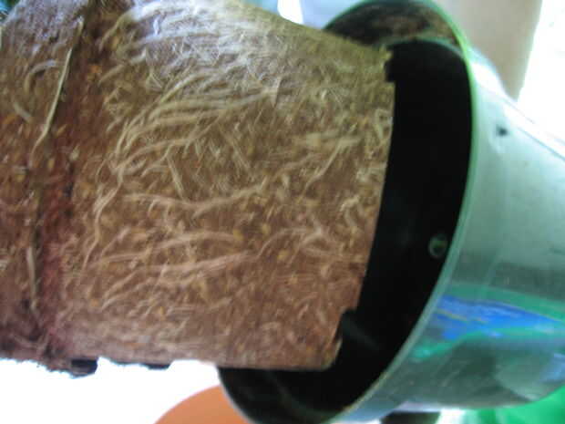 Al mover un árbol de un recipiente a otro, simplemente toque y agitar el bote para liberar el cepellón, incline el bote hacia abajo y agarrar los bordes de la masa de suciedad que sale, deslice suavemente el árbol hacia fuera. A continuación, (no sacar cualquier suciedad), cavar un agujero lo suficientemente grande en la nueva maceta para colocar el árbol de la entrada y colocar en. Cubra las raíces con tierra, agua y fertilizar si usted no tiene un tiempo.